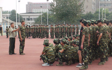 首先,教官们依据身高对同学们进行了有序的排序,这样就会让整个方队看起来美观大方。其次,进行了训练之前的热身,比如让同学们俯卧撑、仰卧起坐等做一些军训前的适应训练,以防会有一些同学身体出现不适应的状况。有了这些准备工作做基础,而后,他们又进行了整理军装军容,练习基本口令等训练。教官们对学生的军训要求格外严格,整理军容和军姿站立有不到位的,单独进行示范并手把手纠正。同学们也积极响应,在英姿飒爽的军官的带领下认真训练,丝毫没有半点偷懒。